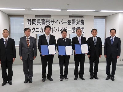 2016年4月27日にNPO法人ふじのくに情報ネットワーク機構の会員3名が静岡県警察本部長より「サイバー犯罪対策テクニカルアドバイザー」の委嘱を受けました。